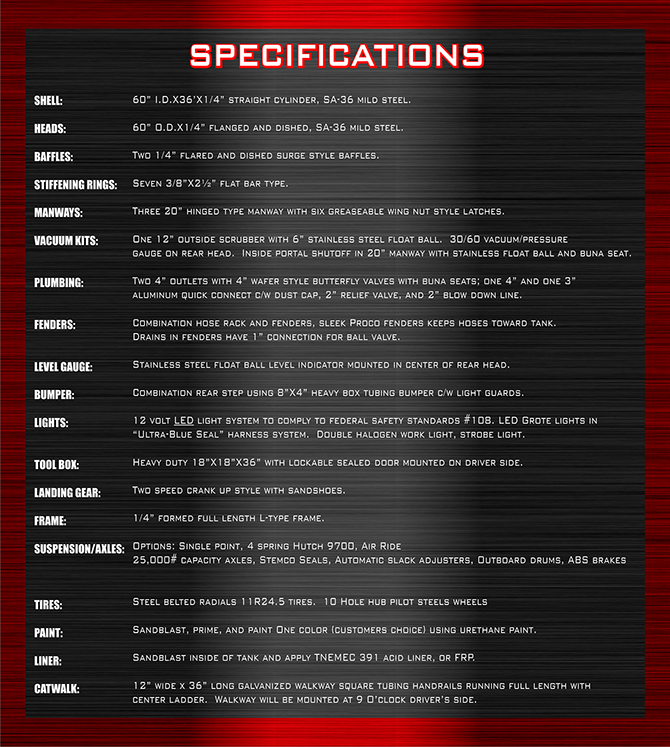 Proco vacuum trailers are built "Oilfield Tough" and made to last. With the variety of options we offer, you can have a vacuum trailer for your specific application.