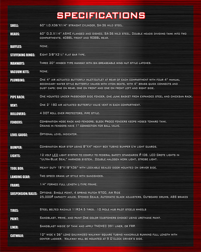 Proco vacuum trailers are built "Oilfield Tough" and made to last. With the variety of options we offer, you can have a vacuum trailer for your specific application.